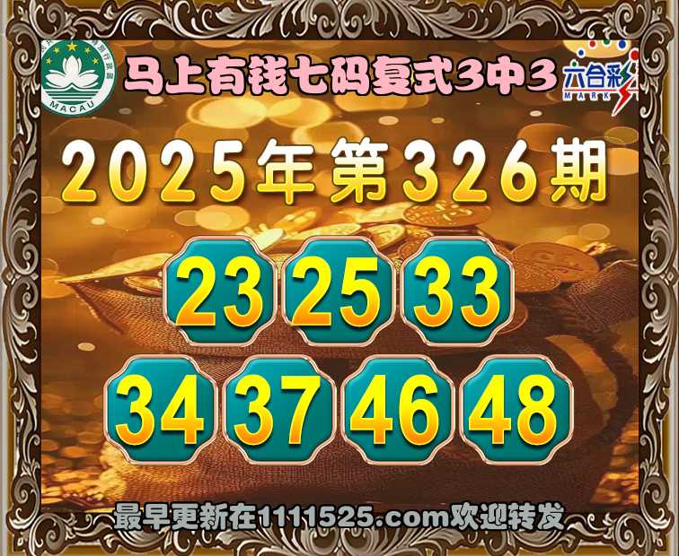326期:『马上有钱』 🥉七码复式3中3🥉