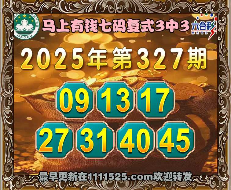 327期:『马上有钱』 🥉七码复式3中3🥉