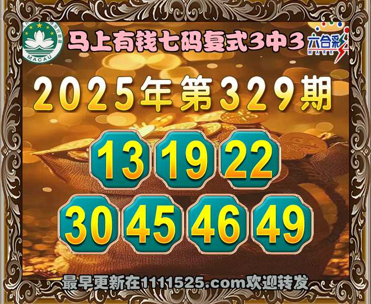329期:『马上有钱』 🥉七码复式3中3🥉