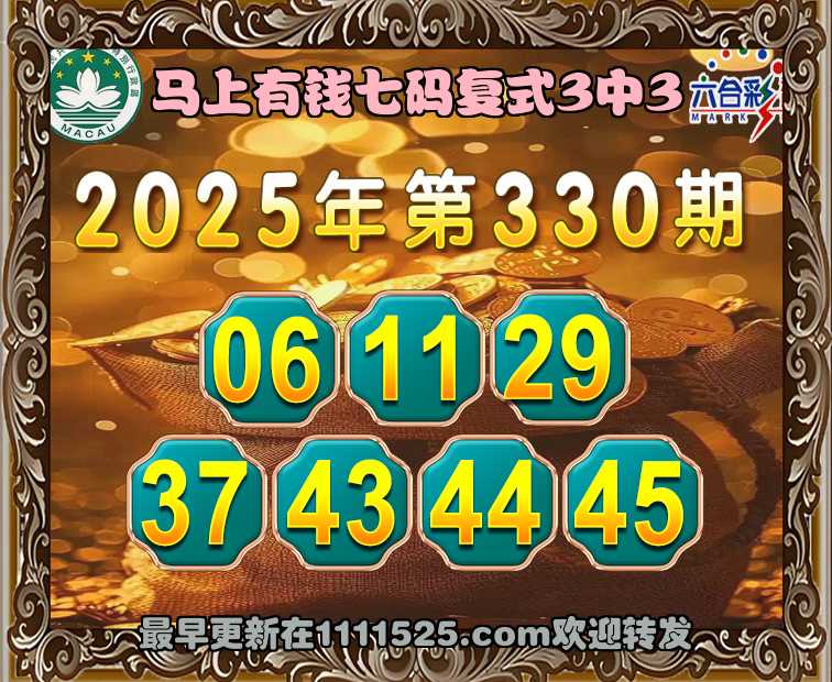 330期:『马上有钱』 🥉七码复式3中3🥉