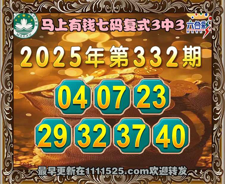332期:『马上有钱』 🥉七码复式3中3🥉