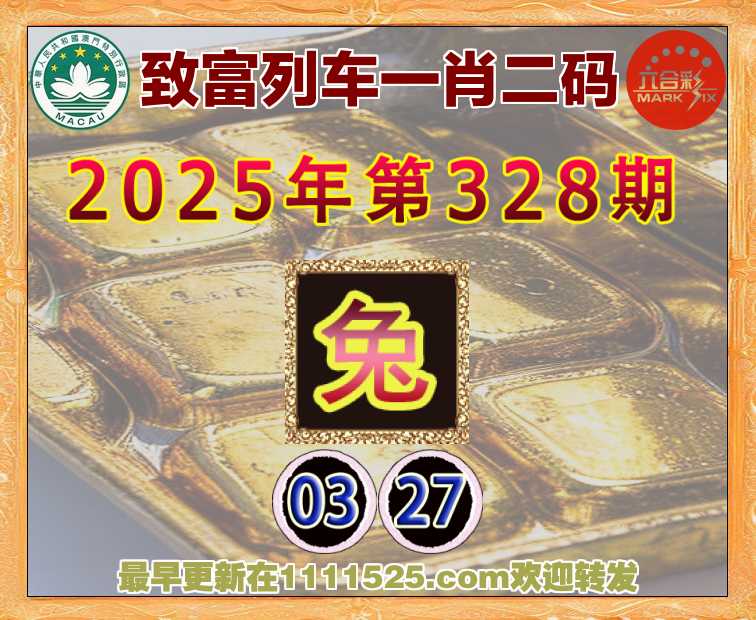328期: 致富列车 ♦️一肖二码♦️【兔】【03.27】开:兔03准