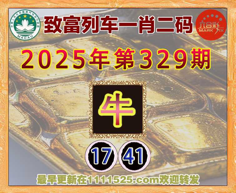 329期: 致富列车 ♦️一肖二码♦️【牛】【17.41】开:牛17准
