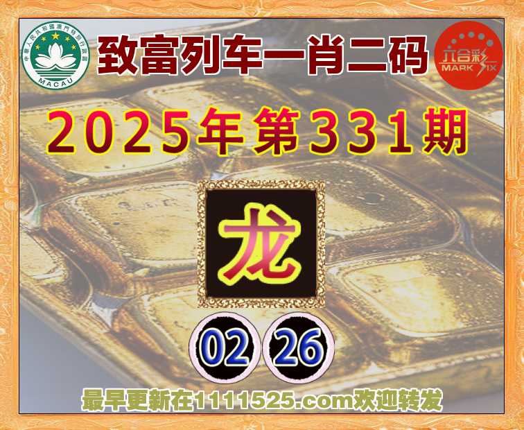 331期: 致富列车 ♦️一肖二码♦️【龙】【02.26】开:龙26准