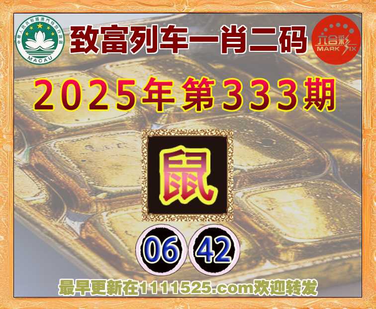 333期: 致富列车 ♦️一肖二码♦️【鼠】【06.42】开:鼠06准