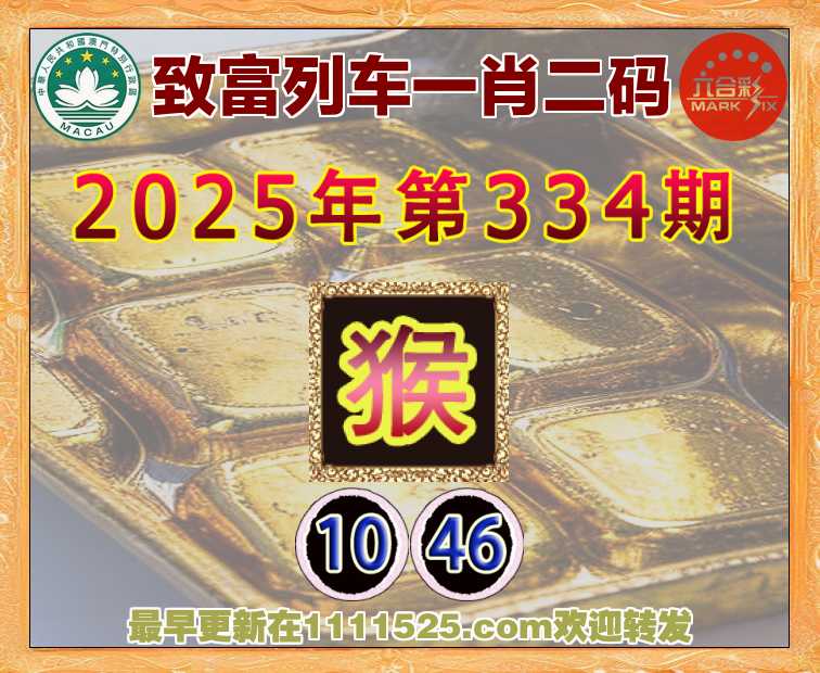 334期: 致富列车 ♦️一肖二码♦️【猴】【10.46】开:猴46准