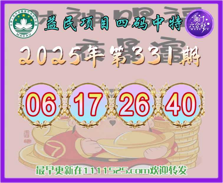 331期:『益民项目』 🀄四码中特🀄【06.17.26.40】开:26准