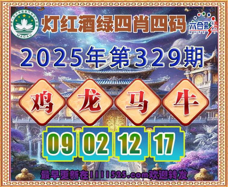 329期:【灯红酒绿】 🍟四肖四码🍟【鸡龙马牛】【09.02.12.17】开:牛17准