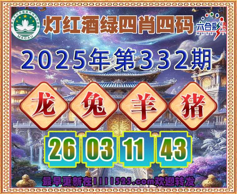 332期:【灯红酒绿】 🍟四肖四码🍟【龙兔羊猪】【26.03.11.43】开:龙26准