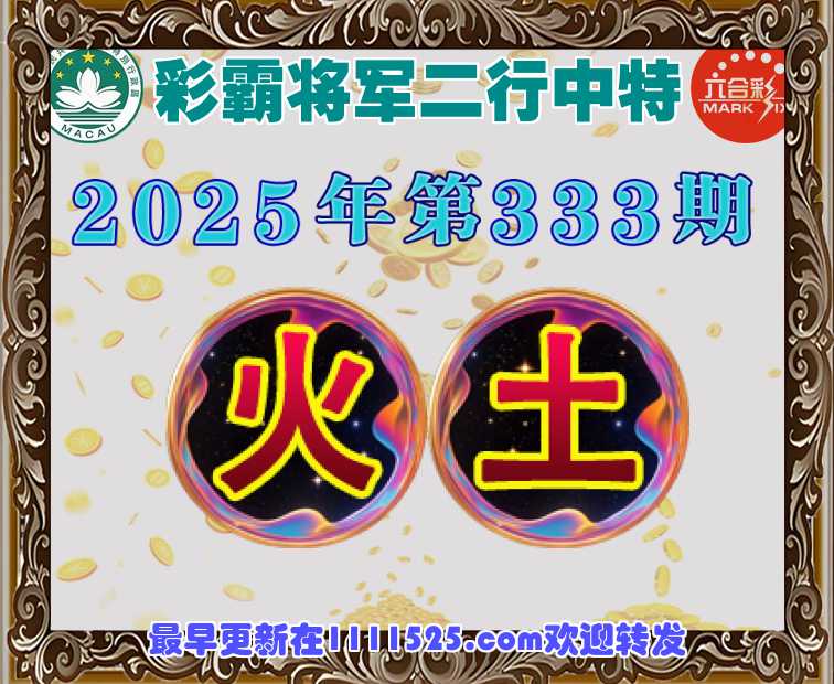 333期:《彩霸将军》  ♣️二行中特 ♣️【火.】开:土06