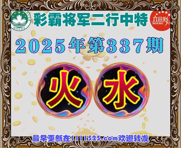 337期:《彩霸将军》  ♣️二行中特 ♣️【.水】开:火09
