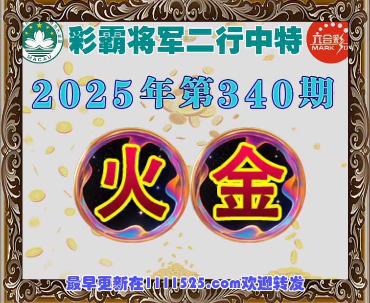 340期:《彩霸将军》  ♣️二行中特 ♣️【火.金】开:木16