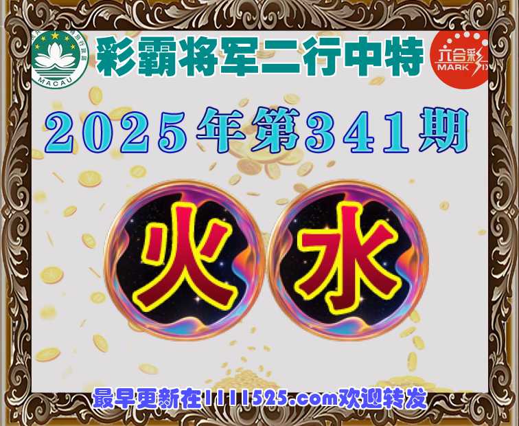 341期:《彩霸将军》  ♣️二行中特 ♣️【火.水】开:00准
