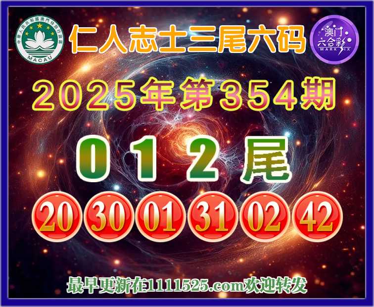 354期:《仁人志士》 ⚽三尾六码⚽【012尾】开:30准